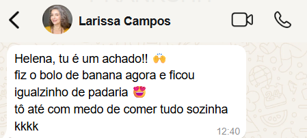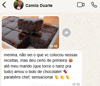 Se dentro desse prazo você não amar as receitas ou achar que o e-book não é pra você, é só me mandar uma mensagem.